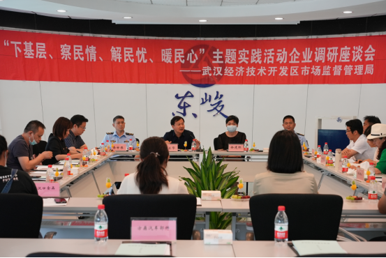 为深入开展党员干部下基层察民情解民忧暖民心实践活动和“解难题、稳增长、促发展”企业帮扶活动,充分了解武汉经开区企业生产经营过程中的问题和困难,广泛听取市场主体和基层群众对我区市场监管工作的意见建议。6月23日下午,武汉经开区市场监督管理局联合区“小个专”综合党委在湖北东峻工贸有限公司多功能活动厅,召开“下基层、察民情、解民忧、暖民心”主题实践活动企业调研座谈会,48家区内企业代表参加了本次座谈会,区市场监管局党组全体班子成员参加座谈会,座谈会由区市场监管局党组书记、局长鄢卫华主持。