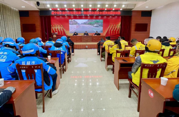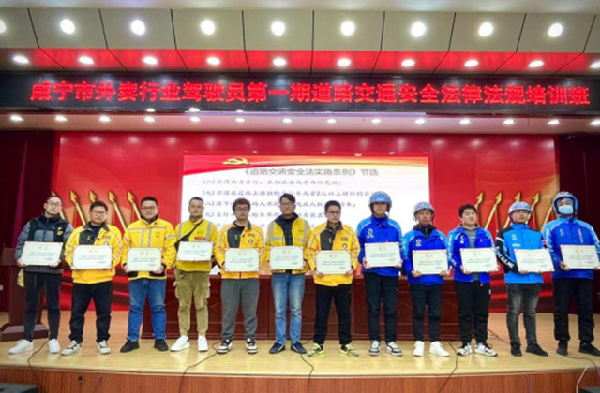 3月23日晚,咸宁市市场监督管理局联合咸宁市个体私营企业协会举办外卖行业驾驶员第一期道路交通安全法律、法规培训班,正式启动咸宁市外卖行业驾驶员不文明交通行为整治行动。