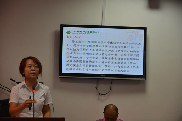 图为:咸宁市邮政储蓄银行工作人员作“易会通”卡功能介绍