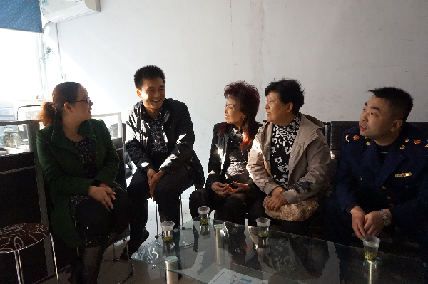 图为:民主协会支部一班人看望慰问王洪涛(左二)