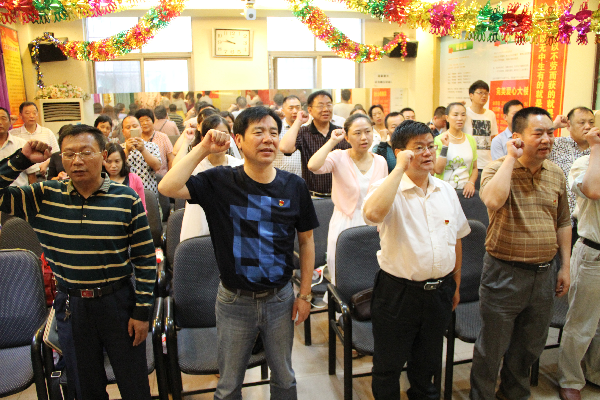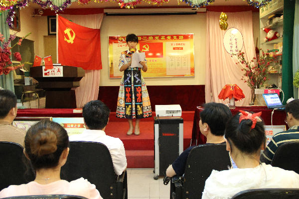 9时30分,在党支部党员活动室,全场参会人员集体齐唱国歌,拉开了党支部“主题党日”活动的序幕。随后,全体党员举起右手,重温了入党誓词,现场交纳了6月党费,集体诵读了党章总纲部分章节,认真学习了习近平总书记系列重要讲话选篇《中国梦归根到底是人民的梦》,党支部书记以“共产党员应当如何看待幸福”为题讲了党课,2名党员代表交流了体会感言。最后,追忆党史,观看了《筑梦路上》纪录片第一集《群英寻路》。