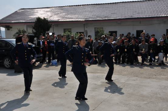 图为:黄梅县工商局、县个私协会工作人员为苦竹乡福利院老人表演舞蹈节目