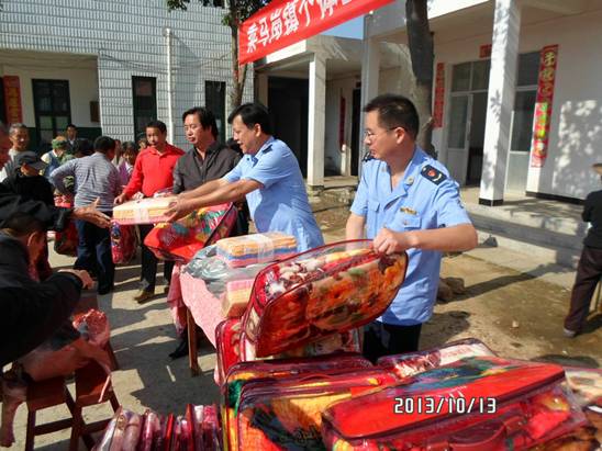 10月13日,中国传统节日“重阳节”到来之际,麻城市乘马岗镇工商所、镇个私协会组织个私业主来到镇敬老院献爱心,为老人们送上节日的祝福,并发放了价值近万元的爱心物资。