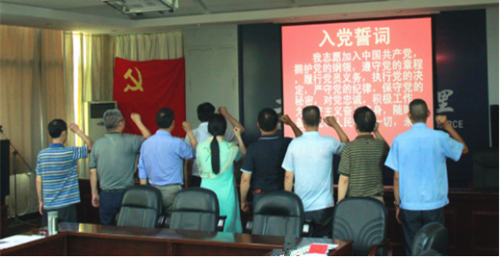 会议最后,全体党员面对党旗重温入党誓言。庄严宣誓,永远跟党走中国特色社会主义道路!