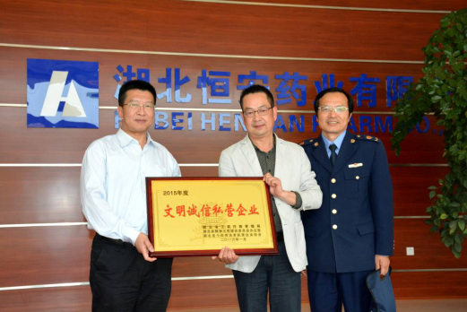高书记首先为企业送上“湖北省文明诚信私营企业”、“最佳成长奖”荣誉牌匾,肯定2015年企业取得的成绩。恒安药业常务总经理习祚成同志,围绕企业发展和企业党建两大主题汇报工作。