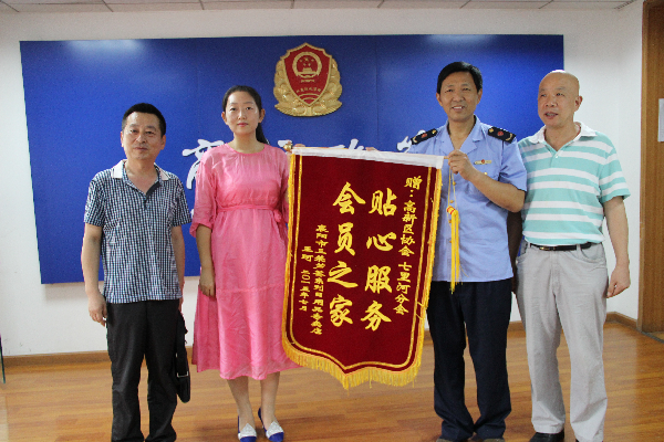 近日,市个私协会会员王珂女士冒着37度的高温给高新区个私协七里河分会送去了一面大红锦旗,上面写着八个大字:“贴心服务,会员之家”,以表达自己对个私协会的感激之情。
