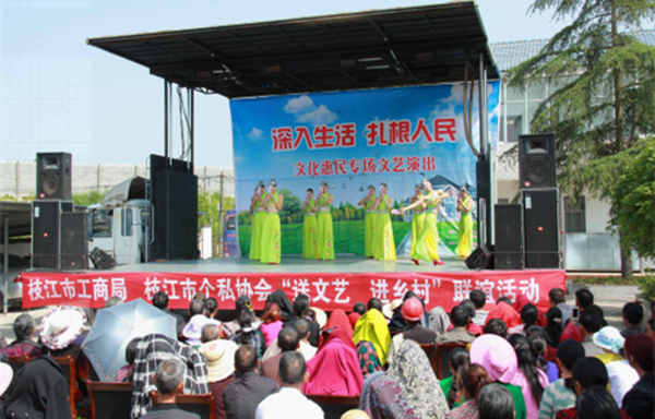 5月13日一大早,枝江市安福寺镇三藏寺村村委会前人头攒动,枝江市个私协会“送戏下乡”演出现场热闹非凡。