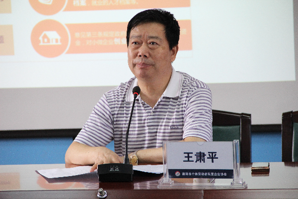 培训班由市工商局党组成员、调研员,市个私协会党委书记、会长王肃平主持。