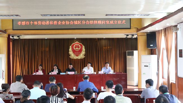 2016年5月25日上午,孝感市个私协会在孝感市工商局城区分局五楼会议大厅举行了成立法律顾问室仪式,来自城区的60名会员代表参加了会议。市工商局副局长王清平同志亲临会场表示祝贺!并作了重要讲话。