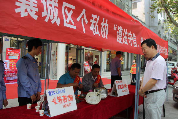 10月16日上午,襄阳市个私协会在全市个私协系统统一开展了主题为“遵法守信,创业兴业”光彩服务日活动。市局党组成员、调研员、个私协会长王肃平在市个私协会秘书长李兆建等协会干部陪同下,参加了襄城及樊城个私协举办的光彩日活动。