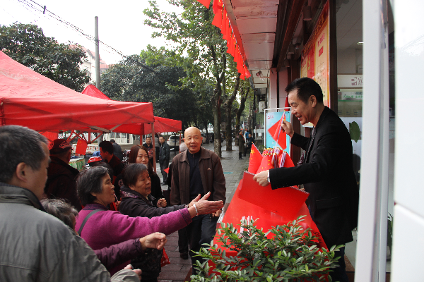 10月18日上午,襄阳市个私协会在全市开展了 “光彩服务日”主题活动,组织广大会员用实际行动向党的十九大献礼。市局党组成员、副局长、市个私协会会长宋珂参加了“光彩服务日”活动,并亲手为群众送上一面面鲜红的国旗。