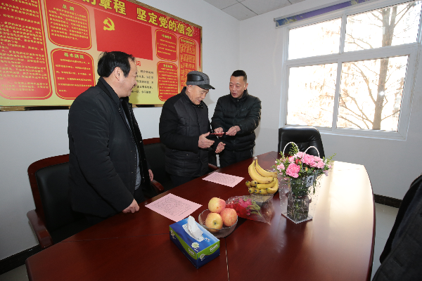 图为向痔瘘医院党支部书记段少江送发新春慰问信