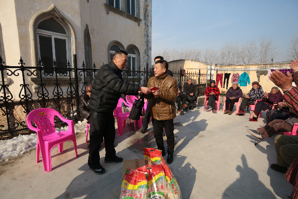 图为向福利院孤寡老人送去慰问金及物资