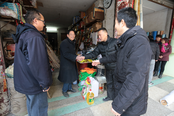 图为向慰问贫困个体工商户送去慰问金及物资