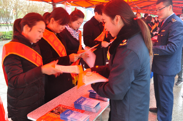 (图为协会工作人员发放讲解文明诚信经营倡议书)