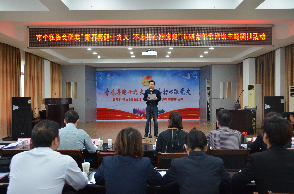 5月3日上午,市个私协会团委在市工商局七楼会议室举办了“青春喜迎十九大,不忘初心跟党走”五四青年节网络主题团日活动。共青团市委副书记杜晓溪全程参加了主题团日活动并讲授团课。市局党组成员、副局长、市个私协会党委书记宋珂参会并致辞。