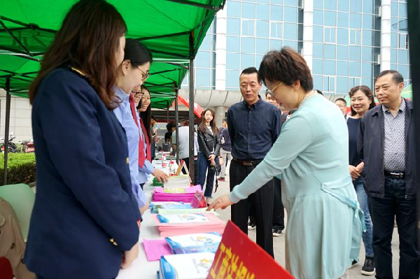 图为孝感市人民政府副市长吴捷亲临工商法规咨询台指导工作