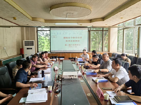 7月12日上午,襄阳市个私协会在湖北环宇车灯有限公司会议室召开第二届六次理事会,本次会议旨在商议协会换届筹备工作。市个私发展中心负责人余学军主持会议,市市场监管局四级调研员任旭、市个私协会第二届理事会成员及相关工作人员共20余人参加会议。