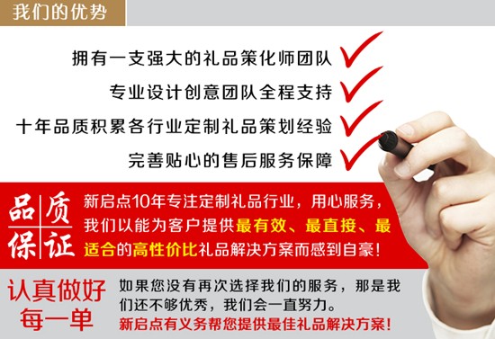 公司承诺:本着客户至上、诚信为本、质量第一、求实创新的经营理念,为客户提供专业优质的礼品服务,传达美好的祝福。我们将竭尽全力,用真心还来您满意的笑容!