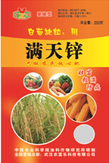 满天锌(基施型)——壮苗,粒满,防病 满天锌基施型是根据我国农田土壤缺锌状况和作物需锌规律研制生产的基施型长效缓释锌肥,选用进口优质硫酸锌为原料,纯锌量25%,对防治水稻坐蔸、僵苗、结实率低,玉米花白苗、缺粒秃尖,小麦黄化苗、抽穗不畅,果树小叶病等作物缺锌症状有明显效果。可与其它肥料混匀后施用或单独施用,基施、追施均可。 包装:圆颗粒,200g/袋。用量:大田作物亩用量1-2袋;果树按树体大小,每株5-10克;蔬菜根据种类、生长周期酌情施用,一般长季蔬菜每亩1-2袋,短季蔬菜可减半使用。 |