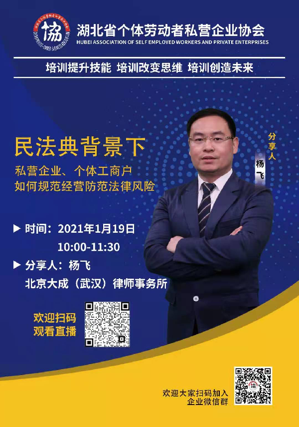 湖北省个体劳动者私营企业协会举办《〈民法典〉背景下私营企业、个体工商户如何规范经营防范法律风险》公益直播