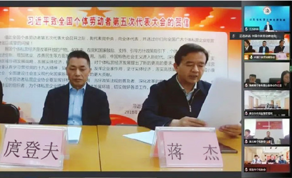 中国个体劳动者协会副会长兼秘书长庹登夫、副秘书长蒋杰、组织联络部主任丁新京参加了会议。副秘书长蒋杰主持会议,副会长兼秘书长庹登夫讲话。