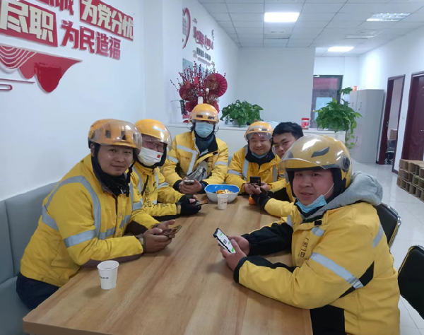 杨建被大家推举为支部书记。党员外卖小哥们有了自己的家,会议精神传达、组织生活会、微党课也都正常开展起来。疫情防控常态化期间,多家医院不允许外卖员进医院送外卖。差评影响到很多骑手的收入,杨建把大家的诉求向上反映,很快得到解决。考虑到新骑手对路线不熟,送单容易超时,杨建和另两名党员一起搜集汇总没有标识楼号的小区,截图标注发给他们。党员们做的事,外卖小哥们都看在眼里记在心里,刚刚成立的党支部释放出的能量,也让大家对党组织有了更多认识,党组织的凝聚力和影响力在渐渐扩大。黄俊和另外三个骑手一起向党支部递交了入党申请书。