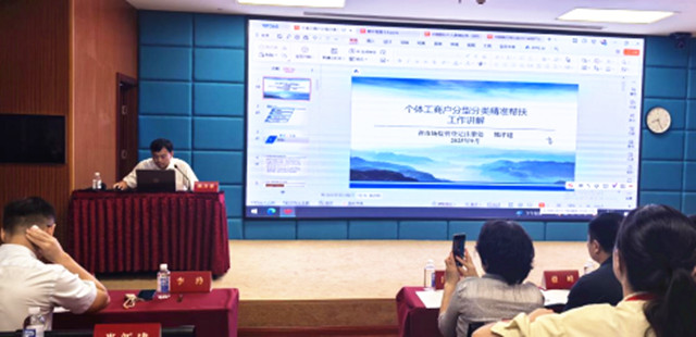 省市场监管局登记注册处科长熊洋建对个体工商户分型分类精准帮扶工作进行了讲解。他介绍了我省分型分类工作推进情况,着眼个体工商户持续健康发展,注重质量和效益,以分型提供差异化帮扶,以分类发挥示范带动作用。对“荆楚个体通”系统分型分类展示、政策查询、金融支持等9项主要功能进行了演示。